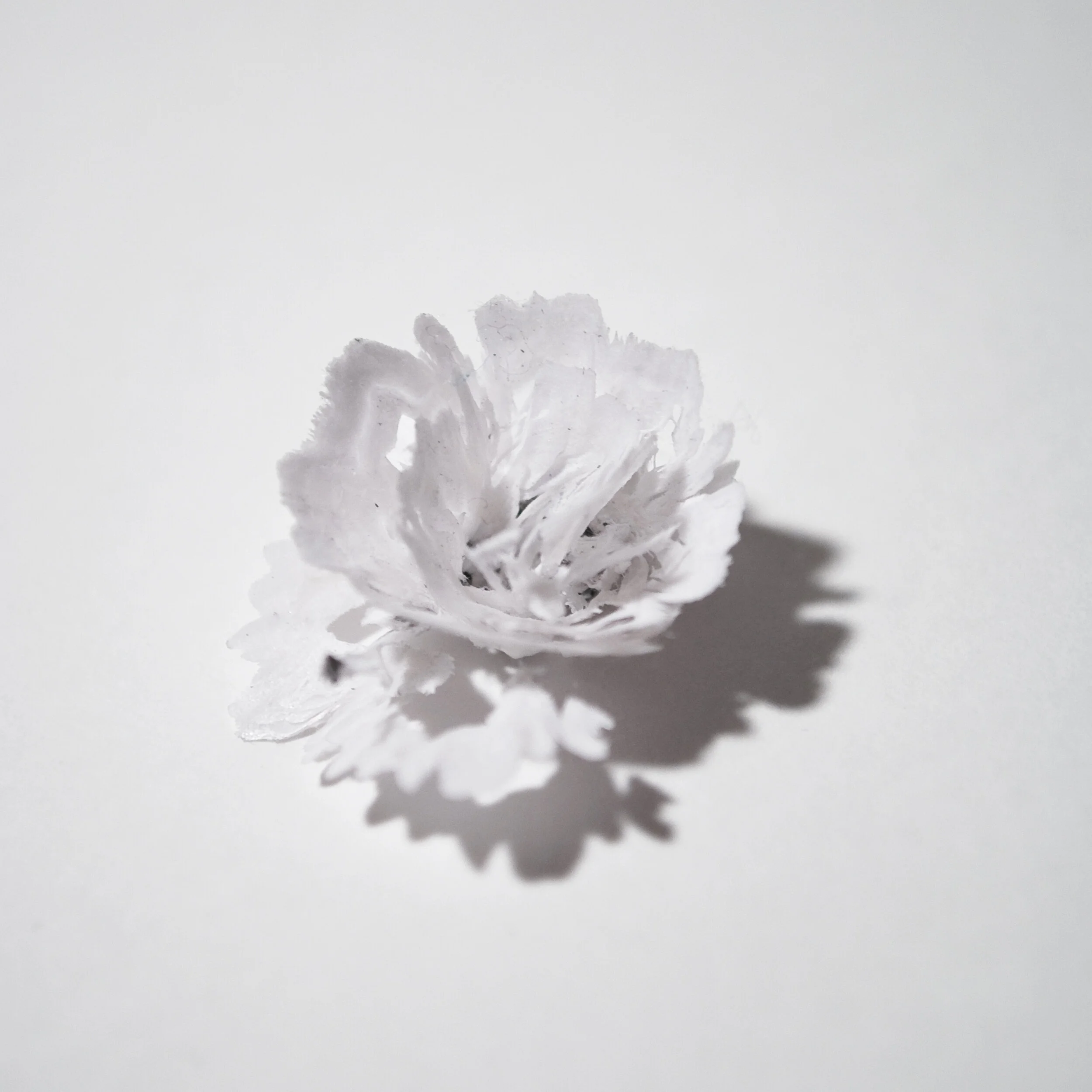 儚さ、もののあわれをテーマとして制作した、花が散るように削りくずが生まれる鉛筆です。紙と膠で出来た鉛筆の削りくずは繊維が複雑に重なるため、木の削りくずよりも千切れにくくなり、花のような形に丸まります。また、膠を乾燥させる時に生まれる表面の皺が、削りくずに花びらのフリルのような形を与えます。